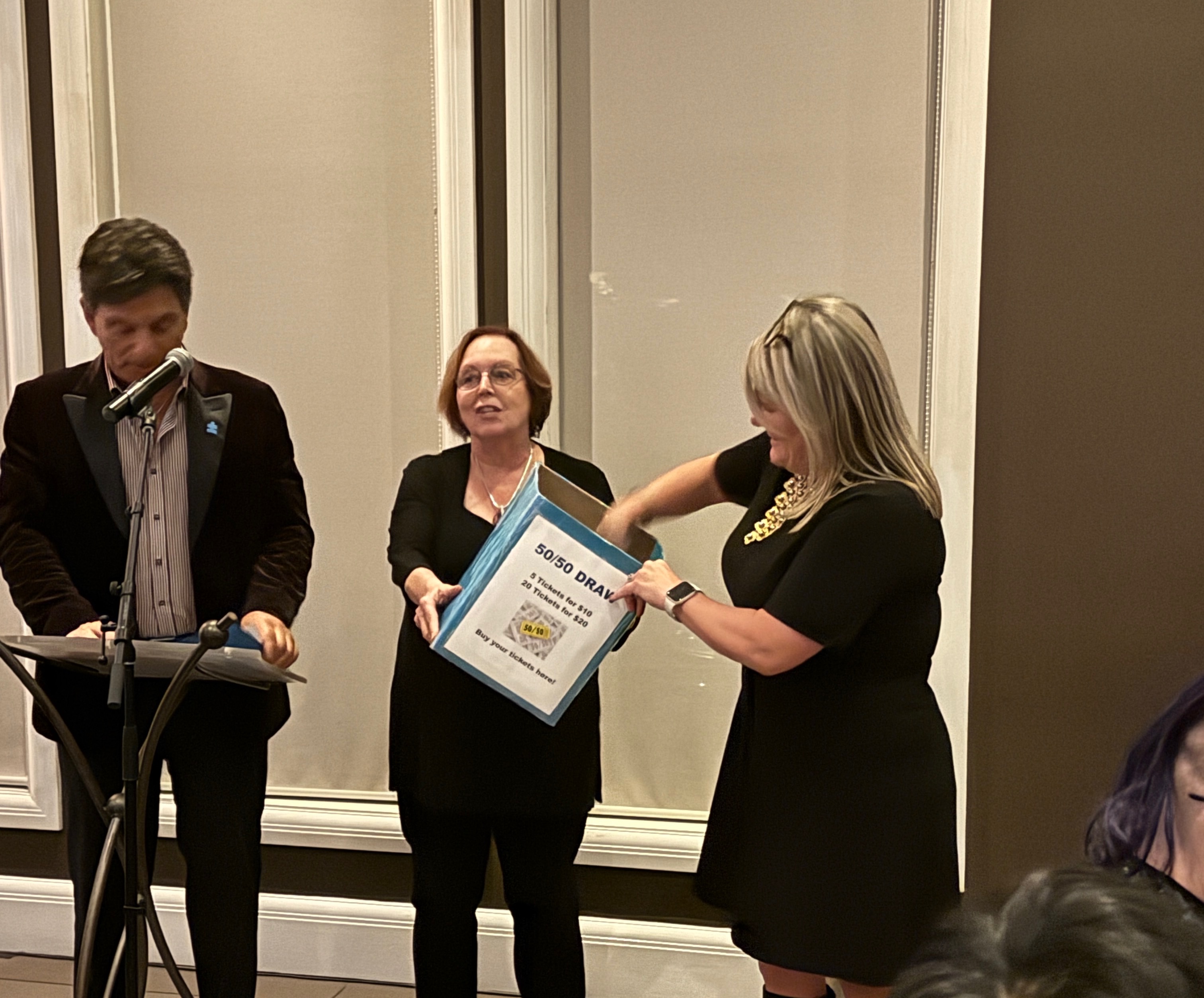 Jennifer Cruickshank drawing the winning 50/50 ticket